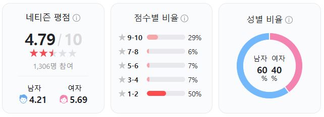 그러나 더 많은 관객들이 "스토리 전개가 산만하고 개연성이 부족하다", "92분의 짧은 러닝타임에도 지루한 순간이 있다", "오컬트 요소와 액션의 조화가 어색하다"는 아쉬운 평가를 남겼습니다. 특히 "캐릭터 간 설정이 부실하다"는 지적이 많았으며, 기대했던 것보다 완성도가 떨어진다는 의견이 지배적입니다.