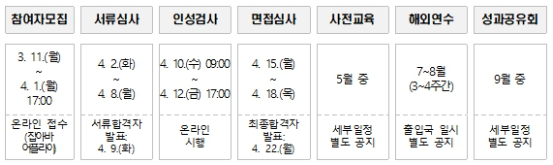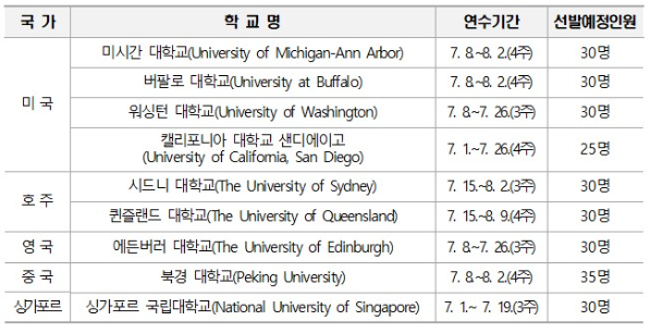 * 총 모집인원, 대학별 선발인원, 연수기간 등은 변경될 수 있음