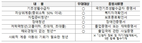 (우대 대상자일 경우) 우대 대상 증빙서류
