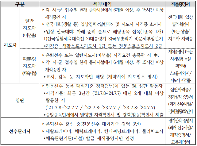 경기도 내 거주하는 현역선수, 선수 출신 지도자, 심판 등 19세 이상 체육인('24.7.8.기준)