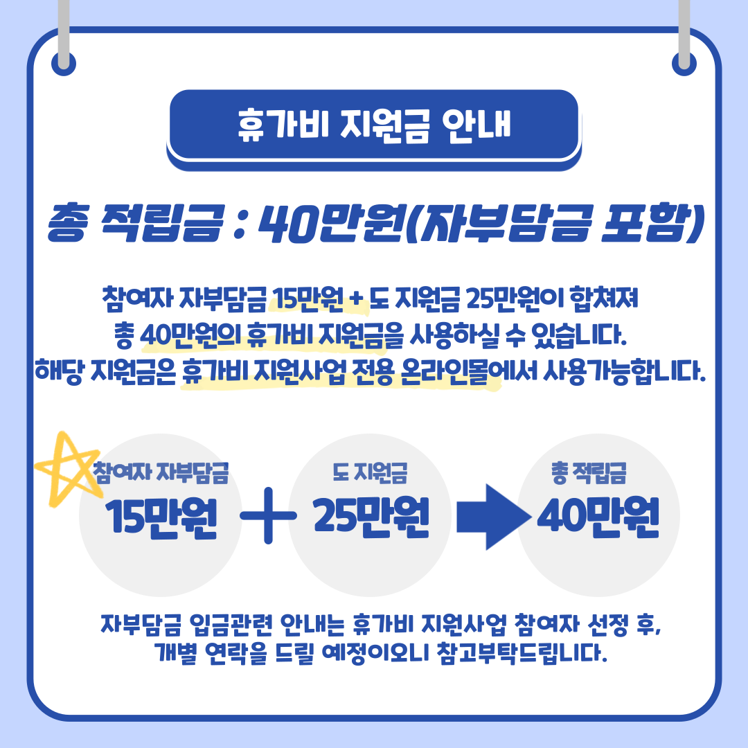 총 40만원(참여자 자부담 15만원 + 경기도 지원금 25만원)