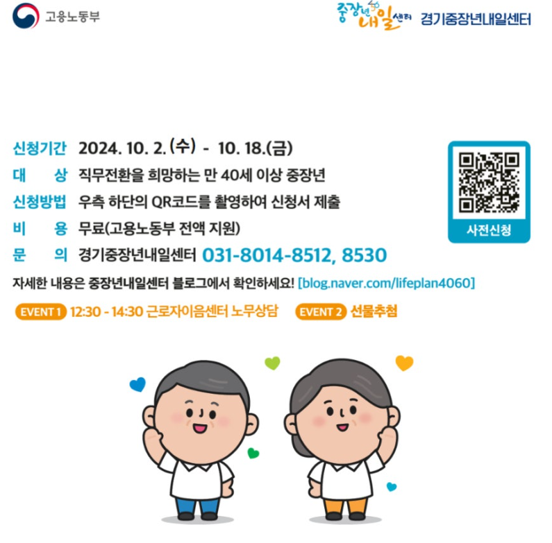 경기중장년내일센터는 중장년층의 경력 개발과 직무 전환을 지원하는 다양한 프로그램을 운영하고 있습니다. 생애경력설계 프로그램, 맞춤형 교육, 그리고 현장형 실습 프로그램 등을 통해 중장년층이 새로운 직무에 성공적으로 적응할 수 있도록 돕고 있습니다. 이번 직무콘서트도 이러한 노력의 일환으로 진행됩니다.