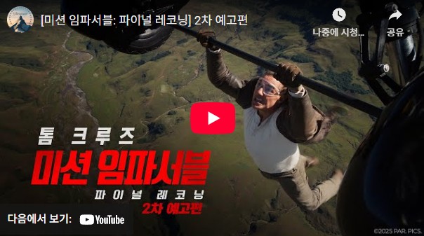 ‘미션 임파서블8’은 단순한 액션 영화 그 이상의 가치를 제공합니다. 극한의 현실 액션, 배우들의 헌신적인 연기, 그리고 시대의 기술적 상상을 현실로 구현한 연출력까지. 영화 팬이라면 절대 놓칠 수 없는 작품입니다.