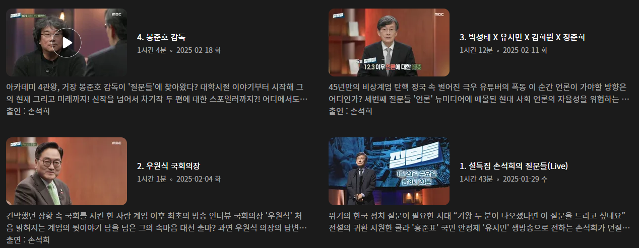 이상으로 '손석희의 질문들'에 대한 소개를 마치겠습니다. 많은 분들이 이 프로그램을 통해 새로운 시각을 얻고, 깊이 있는 대화를 나누기를 바랍니다.