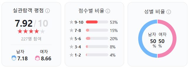 - "감정선이 잘 전달되어서 몰입감이 좋았다."