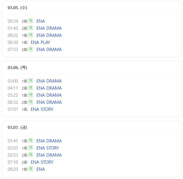 방송시간 및 방송사 정보