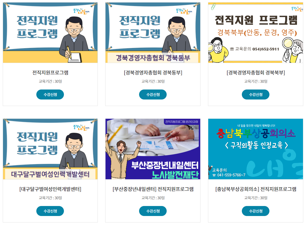 - 전직학교 프로그램 : 퇴직 전후 중장년층을 위한 전직 교육 제공