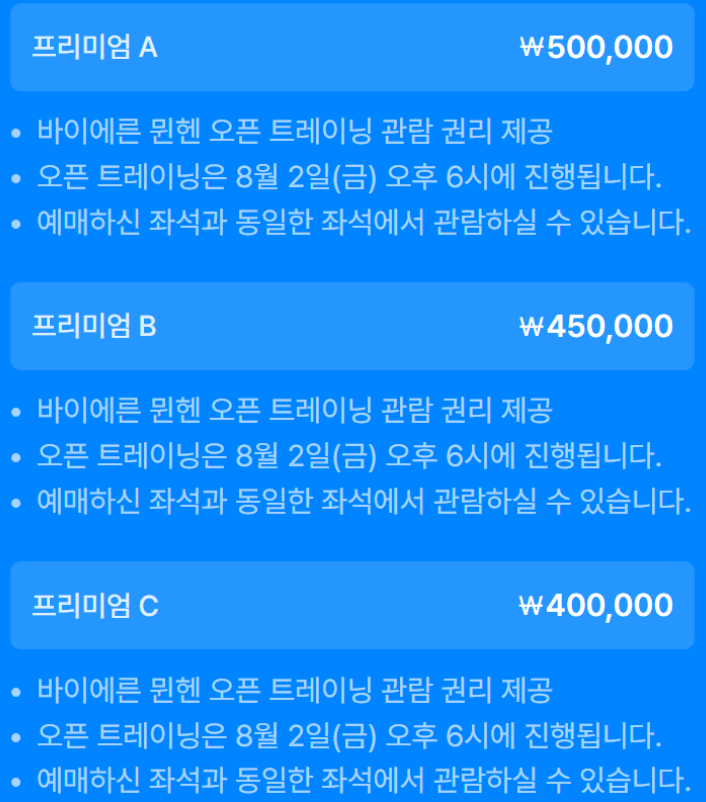 바이에른 뮌헨 오픈 트레이닝 좌석 가격