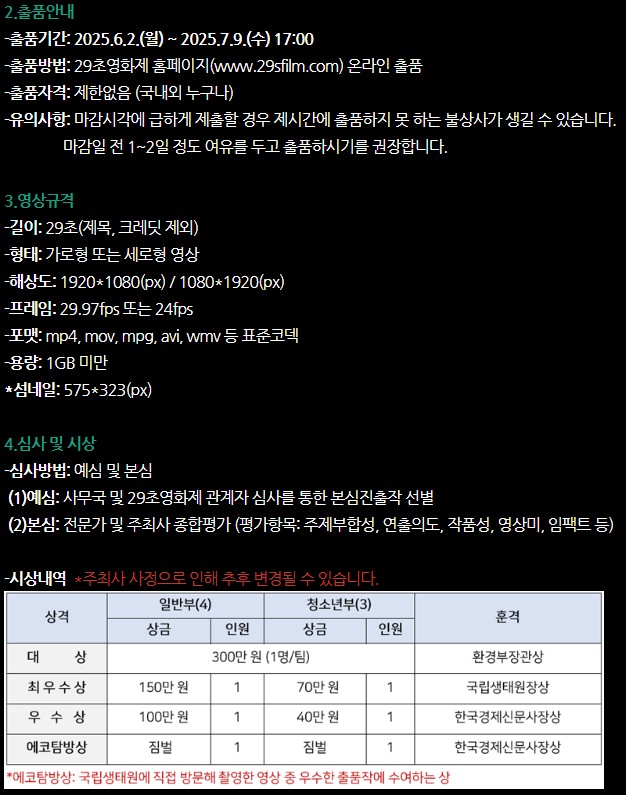 | 국립생태원 29초영화제 | 환경부/국립생태원 | 환경·생태 보호 | 2025.07.09 |