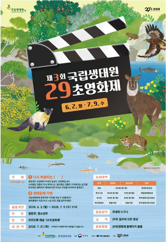 - 국립생태원 29초영화제 – 자연과 환경 보호 메시지를 담은 영상 공모